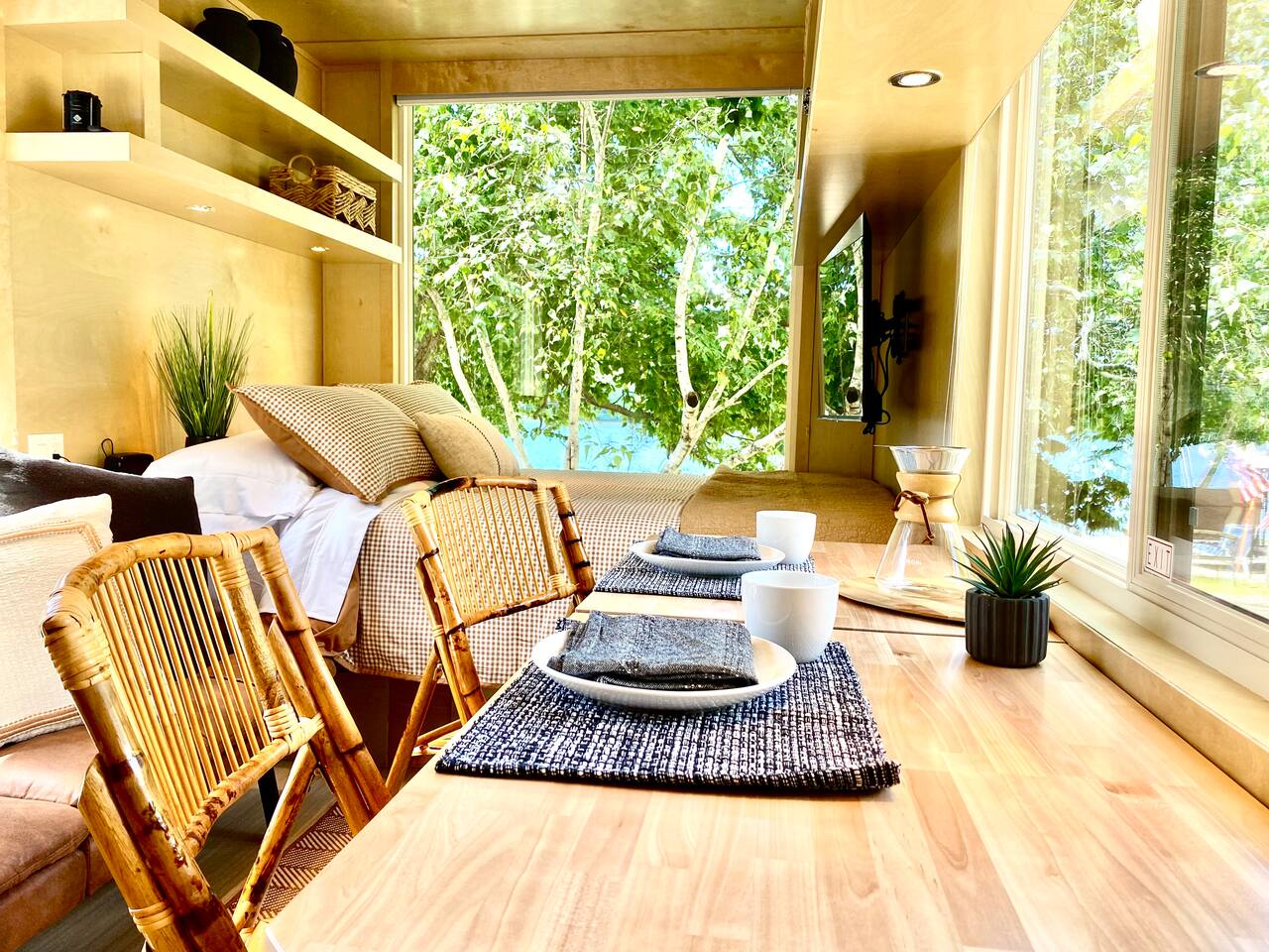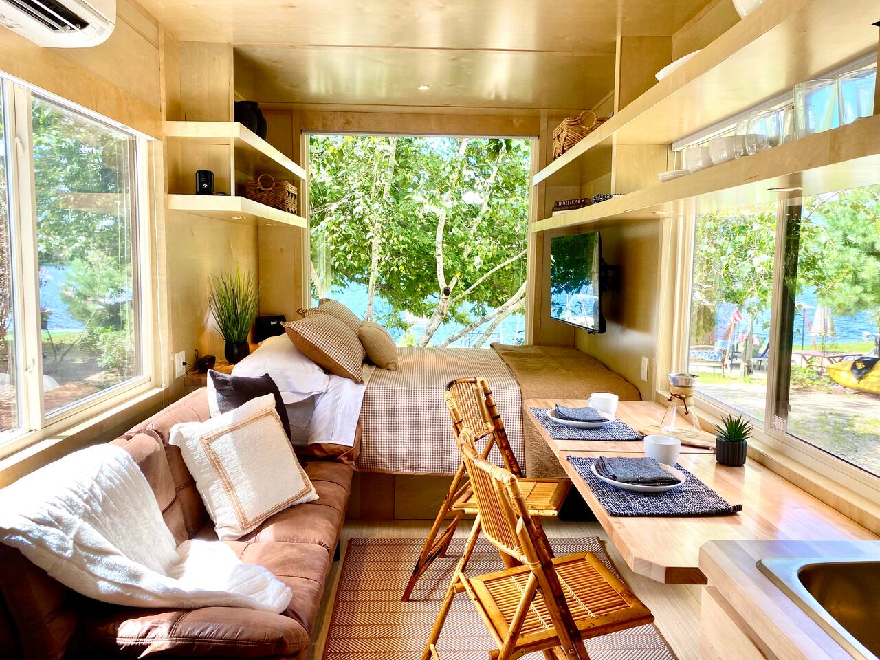 Escape to Canoe Cabin—a uniquely designed, romantic tiny house set just steps from the lake. Whether you’re here to unwind, paddle, or explore, you’ll feel immersed in nature with modern comforts at your fingertips.