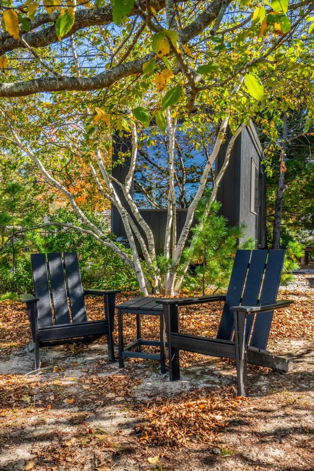 A modern, single-level layout designed for comfort and ease: Bedroom: Queen bed with large lakeside window, ambient lighting, built-in storage. Living Area: Seating area with TV, Bluetooth sound system, books for post-sunset relaxation. Kitchen: Compact yet complete with mini-stove, microwave, toaster, pour-over coffee setup, wine glasses, plus basic cooking supplies. Dining Nook: Cozy table with lake views—perfect for two. Bathroom: Clean and functional—hot shower, full toiletries, hair dryer, and plenty of towels. Outdoor Access Step outside to your own piece of lakeshore: shared sandy beach, comfortable outdoor seating, fire pit for marshmallows or quiet stargazing. Complimentary shared kayaks, canoe and peddle boat invite you to explore the lake at your own pace. Practical Perks Fast Wi‑Fi (≈248 Mbps) and a workspace for remote needs. Self check-in via keypad, with full instructions. Free parking right by the cabin. Safety features: smoke/carbon alarms, fire extinguisher, and driveway security camera. Tiny but mighty—Meticulously organized for comfort and functionality. Pet Policy: Sorry, pets aren’t allowed here.