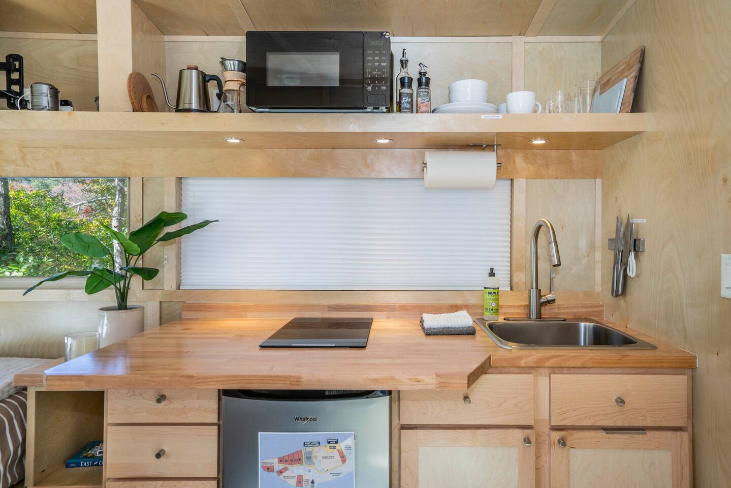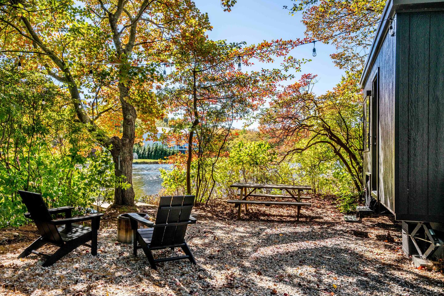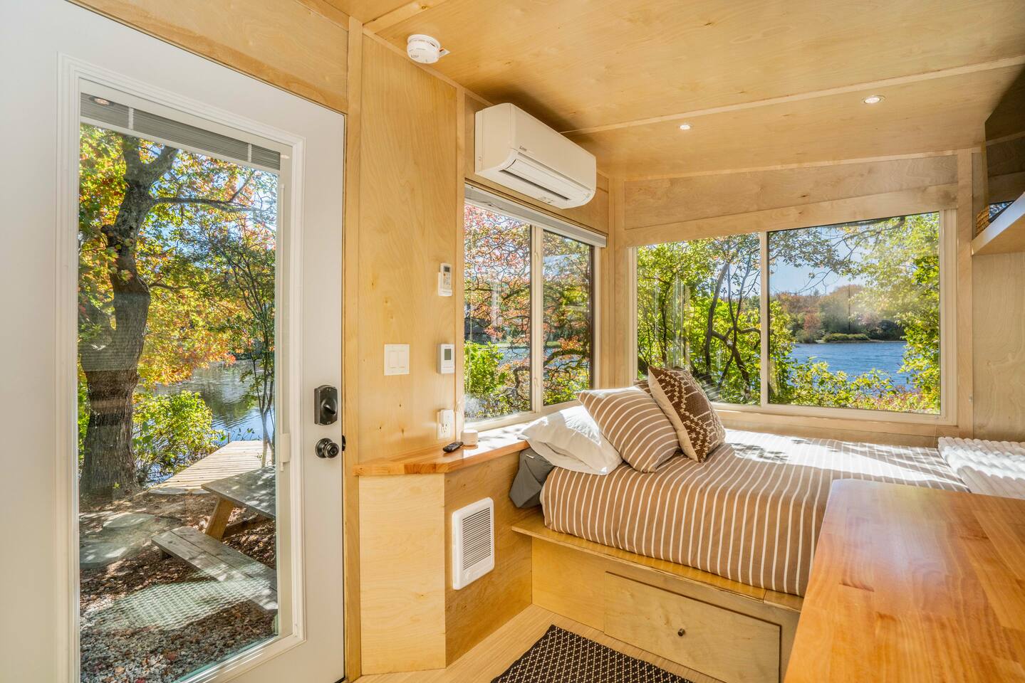 Perched at the tip of our private island on Pattagansett Lake, the Panoramic Point Tiny House is our coziest yet most charming retreat. Enjoy stunning lake views through oversized windows and all the comforts you need: a queen bed, fully equipped kitchenette, full bathroom, and efficient climate control. Get out on the water with free kayaks available in our nearby boat launching area. Perfect for a romantic, relaxing, or budget-friendly stay, this tiny house offers big charm in a small space.