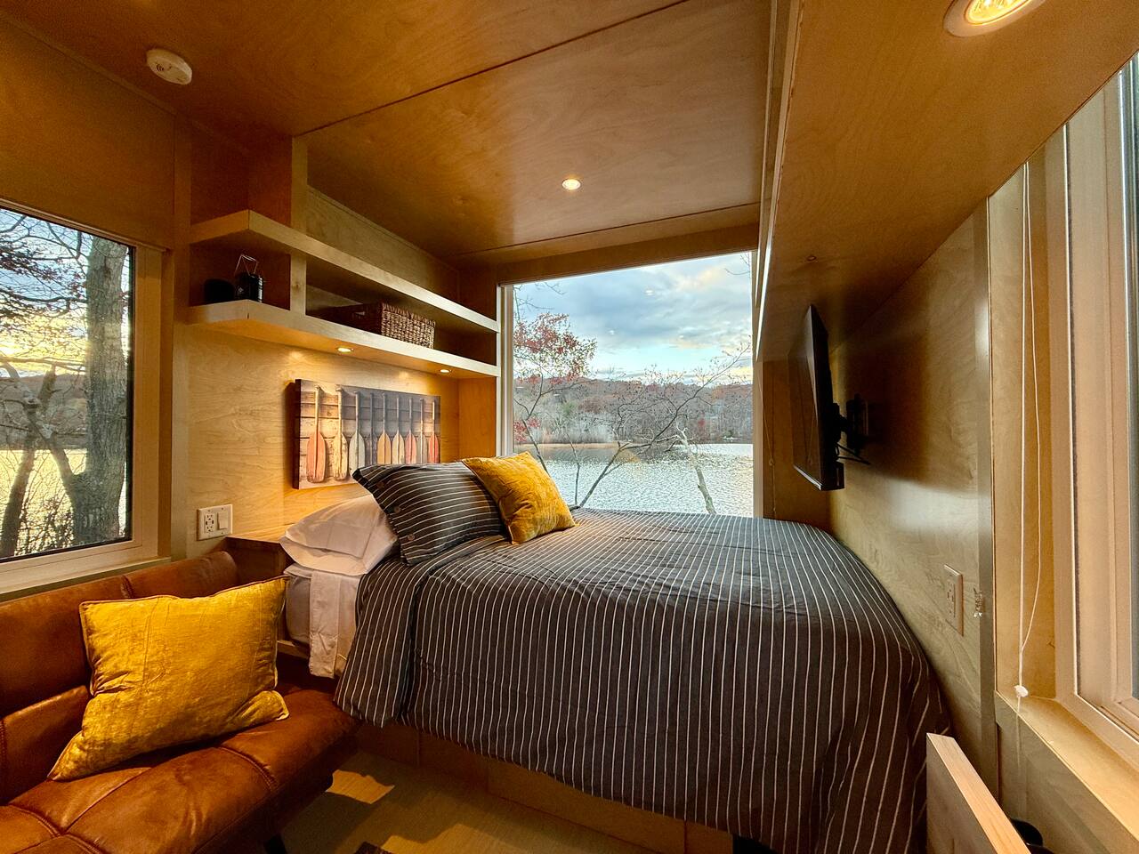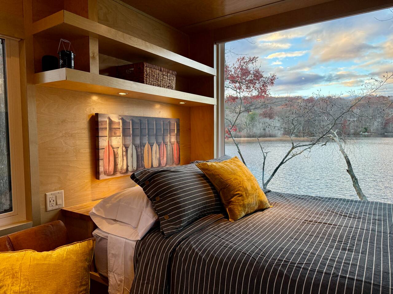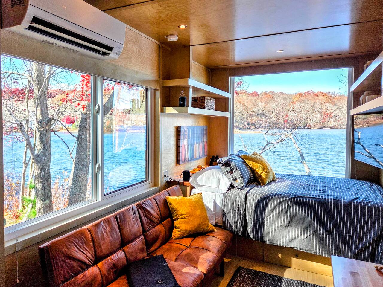 Wake up right on the water in this modern tiny house with a full lake view through the big picture window over the bed. Enjoy canoe-themed décor, high-speed Wi-Fi, A/C, heat, a well-equipped kitchenette, and a full bathroom. Step outside to your own lakefront seating area with fire pit and picnic table. Take advantage of the property's shared kayaks, canoes, and sandy beach area. A cozy, comfortable retreat for a romantic getaway or a relaxing escape to Pattagansett Lake.