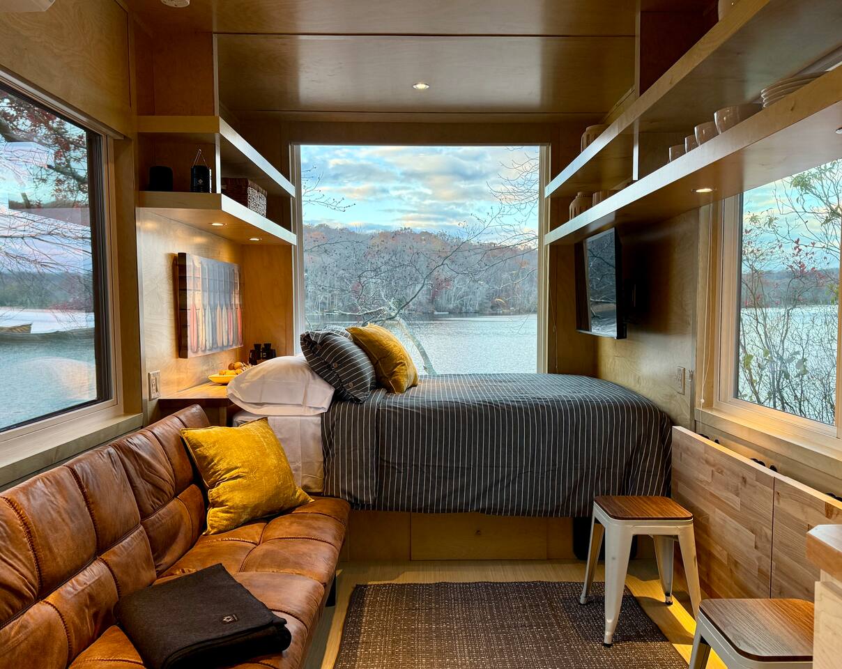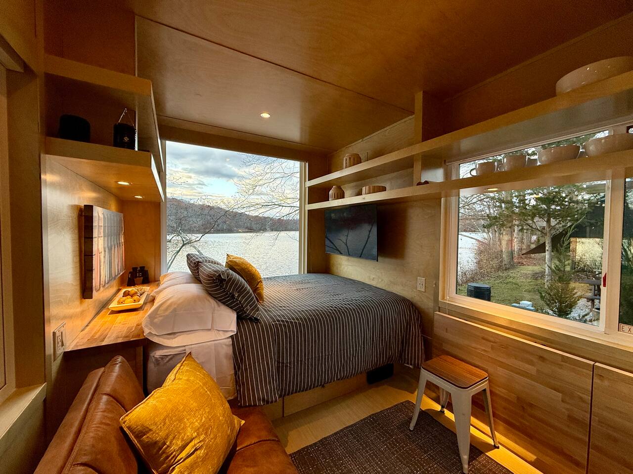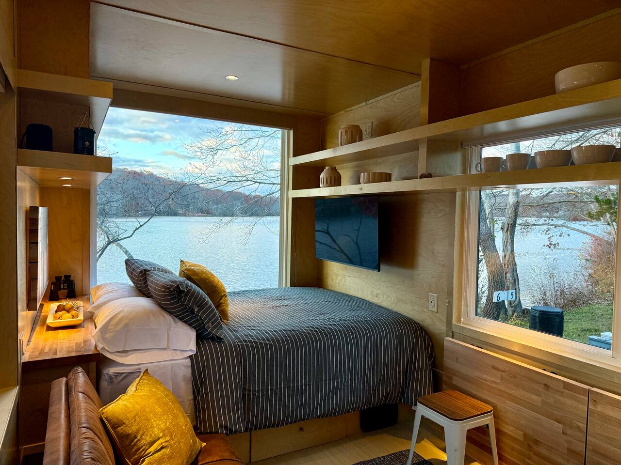 Wake up right on the water in this modern tiny house with a full lake view through the big picture window over the bed. Enjoy canoe-themed décor, high-speed Wi-Fi, A/C, heat, a well-equipped kitchenette, and a full bathroom. Step outside to your own lakefront seating area with fire pit and picnic table. Take advantage of the property's shared kayaks, canoes, and sandy beach area. A cozy, comfortable retreat for a romantic getaway or a relaxing escape to Pattagansett Lake.